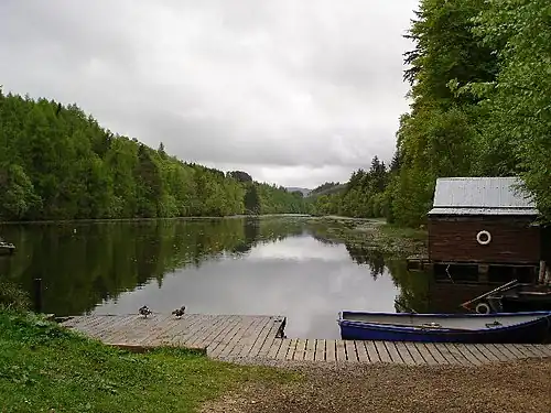 The loch is artificial, created by the Drummuir Castle estate. The Drummuir Curling Club was formed in 1884 and joined the Royal Caledonian Curling Club in 1886 however it had left by 1922[3] and probably folded shortly after, otherwise the last record of the club was in 1911.[4]
