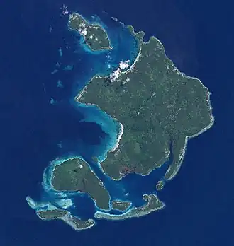 The wreck of HMAS AE1, lost in 1914 possibly due to a diving accident,[2] was located near these islands in December 2017 after 13 search missions. The submarine was found at a depth of 300 metres (980 ft) and was seen to be well preserved and in one piece.[3] The exact location of the wreck was not announced by the Australian government at the time of discovery, to protect it from "unauthorized salvage attempts". The government's stated position is that the wreck will be treated as a war grave.[4]
