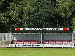There used to be a team called Duns F.C. that competed at the senior non-league level in Scotland, and for many years this team played in the East of Scotland League.[2] The current Duns club (often termed as Duns AFC or Duns Ams) regards itself as the successor of the original Duns senior side, and lists in its honours seven Border Cup successes, which spans the period of the different clubs.[3]