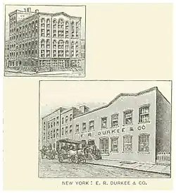Durkee's was established by Eugene R. Durkee, the founder of E. R. Durkee & Co. Spice dealers in Buffalo, New York, in 1857. By 1917, the company had built a four-story industrial structure in Elmhurst, Queens.[3][4] Durkee became the largest factory and employer in Elmhurst, with over 300 employees, primarily women. E.R. Durkee died in 1926, leaving everything to his daughters.[5]