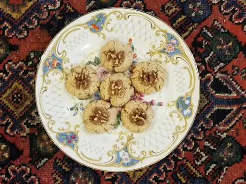 Kulcheh Chaarmaghzi (Walnut cookies) from Durkhanai Ayubi's Afghan cookbook, Parwana, page 157