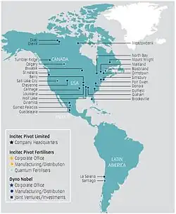 Dyno Nobel Americas (DNA) serves North America and Chile.[10] DNA also supplies nitrogen based products to agricultural and industrial chemical markets.[1]