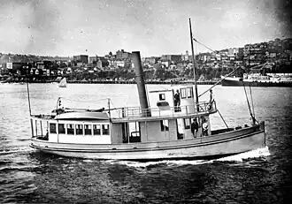 Eagle was a smaller type of steamboat called a "steam launch". The wooden vessel was built at Eagle Harbor, Washington to run on routes connecting Seattle and Bainbridge Island, Washington.[1] Eagle was 53.8 feet (16.4 m) long, beam 15.5 feet (4.7 m), and a depth of hold of 5.4. The overall size of the vessel was 40 gross tons and 23 registered tons. The vessel's US steamboat registration number was 136812.[2]