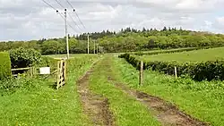 A corn mill, later a thrashing mill used to thrash grain, separating the cereal's seeds from the husk and stalks by a beating action that made all the seeds drop out. Located on the Todrigs Burn it was located to the north of the hamlet with a mill pond standing close to Todrigs Farm however this has been infilled. A large irregular shaped curling pond was located at West Todrigs Farm, west of the farm house and shown in 1897 and 1908 served by the Todrigs Burn is all that survives of the old Caprington Loch (datum 2018).[9] The Todrigs Burn rises in the Coodham area and is also fed by the Slough Burn that rises in the Dankeith Estate.