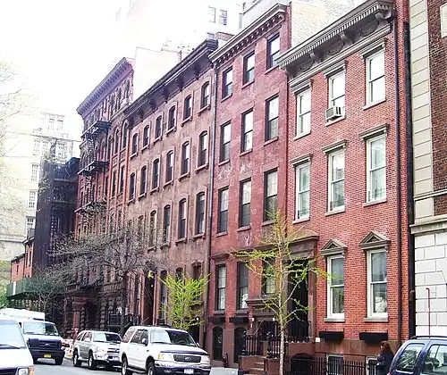 The East 17th Street/Irving Place Historic District is a small historic district located primarily on East 17th Street between Union Square East and Irving Place in the Union Square neighborhood of Manhattan, New York City. It was designated by the New York City Landmarks Preservation Commission on June 30, 1988, and encompasses nine mid-19th century rowhouses and apartment buildings on the south side of East 17th Street, from number 104 to number 122, plus one additional building at 47 Irving Place just south of 17th Street.[1][2]