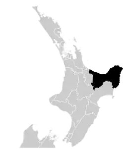 The electorate's main centres are Gisborne (32,529) and Tolaga Bay in the Gisborne Region; and Ōpōtiki and Whakatane (18,800) in the eastern part of the Bay of Plenty Region. Wairoa, the northernmost town in the Hawke's Bay region, was excluded by the 2007 boundary changes.[2][3]