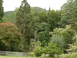 In 1927, Bill Crooks started working at Eastwoodhill, eventually staying on for 47 years. He did most of the farming, so Cook had more time for his beloved trees. The planting of the 'parks' (parts of which are nowadays the arboretum) started around 1927. Around this time, the collecting of different tree species also began for Cook.[9] Through the years the number of plant specimen collected reached immense proportions, with about 5,000 different taxa at the maximum point, at large costs.[10]