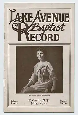 A copy of Lake Avenue Baptist's monthly publication featuring the congregation's preacher, Edgertonian Helen Barrett Montgomery.
