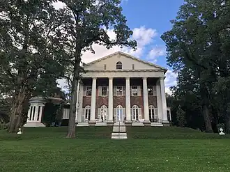 Edgewater is an architecturally significant, early 19th-century house located near the hamlet of Barrytown in Dutchess County, New York, United States. Built about 1824,[3] the house is a contributing property to the Hudson River Historic District.[4] Edgewater's principal architectural feature is a monumental colonnade of six Doric columns, looking out across a lawn to the Hudson River. Writing in 1942, the historians Eberlein and Hubbard described Edgewater as an exemplar of "the combined dignity and subtle grace that marked the houses of the Federal Era."[5]