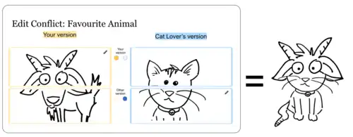 - Merge, by determining if the edits are in unrelated parts of the file and combining without user intervention.