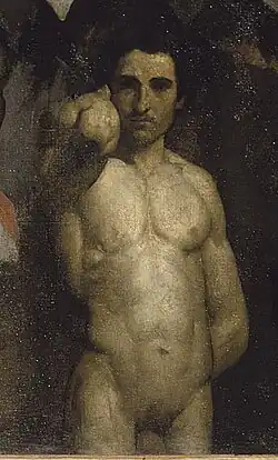 In a composite group portrait of students in Gleyre's atelier,[4] de Pury was painted in the nude by fellow student Alfred Lenglet. Another student, Paul Milliet, wrote of the image in his memoirs: "The fragment…shows the athletic torso of…de Pury. Alfred Lenglet's painting is solid and luminous, but to render completely the elegant vigor of the model would have required the chisel of a Greek sculptor."[5]