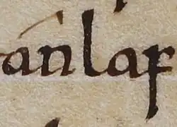 The period from around 925 to 975 was the golden age of Anglo-Saxon royal charters, when they were at their peak as instruments of royal government, and the scribes who drew up most of Edmund's charters constituted a royal secretariat which he inherited from his brother. From 928 until 935, charters were produced by the very learned scribe designated by scholars as Æthelstan A in a highly elaborate style. Keynes comments: "It is only by dwelling on the glories and complexities of the diplomas drafted and written by Æthelstan A that one can appreciate the elegant simplicity of the diplomas that followed."[59] A scribe known as Edmund C wrote an inscription in a gospel book (BL Cotton Tiberius A. ii folio 15v) during Æthelstan's reign and wrote charters for Edmund and Eadred between 944 and 949.[60]