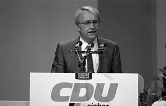In 1978, Stoiber was elected secretary general of the CSU, a post he held until 1982/83. In this capacity, he served as campaign manager of Franz-Josef Strauss, the first Bavarian leader to run for the chancellorship, in the 1980 national elections.[3] From 1982 to 1986 he served as deputy to the Bavarian secretary of the state and then, in the position of State Minister, led the State Chancellery from 1982 to 1988. From 1988 to 1993 he served as State Minister of the Interior.