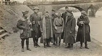 Colonel Logan (second from left) and staff, on the way to the Western front, March 1918.