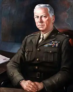 On July 29, 1920, Martin was promoted to colonel in the Pennsylvania National Guard, and became the first post-war commander of the 110th Infantry Regiment, 28th Division, a position he held from that date until August 17, 1922.[6][7] On December 15, 1922, Martin was promoted to brigadier general and assumed command of the 55th Infantry Brigade, 28th Division.[8][9] On June 26, 1939, he became a major general and commander of the 28th Division.[10][11] After the United States entered World War II, Major General Martin was retired on April 1, 1942, because of Army regulations concerning over-age officers.