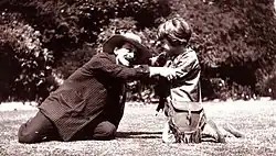 J. M. Barrie (as Hook) playing with Michael (as Peter Pan) in 1906