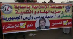 The Constitution of the Arab Republic of Egypt was the former fundamental law of Egypt. It was signed into law by President Mohamed Morsi on 26 December 2012, after it was approved by the Constituent Assembly on 30 November 2012 and passed in a referendum held 15–22 December 2012 with 64% support, and a turnout of 33%.[1] It replaced the 2011 Provisional Constitution of Egypt, adopted in 2011 following the Egyptian revolution. On 3 July 2013, the constitution was suspended by order of the Egyptian army.[2] On 8 July 2013, acting President Adly Mansour issued a decree that envisaged the introduction of amendments to the constitution and put them to a referendum; if approved, the suspended-constitution would be restored into law.[3] The current constitutional declaration has the power of a constitution; it outlines the authorities of the president and establishes many rights.[4]