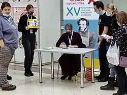 Schulmann signs autographs at the Krasnoyarsk Book Fair in 2021