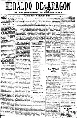 Heraldo de Aragón is a regional daily newspaper published in Zaragoza, Spain. The paper has been in circulation since 1895.