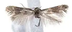 The wingspan is 8–10 millimetres (0.31–0.39 in). Adults are on wing from June to August.[2]