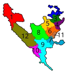 There are twelve units for elections to the subnational House of Representatives of the Federation of Bosnia and Herzegovina. Five are cantons at large, three are sections of more populous cantons, and four contain whole small cantons and sections of larger ones.[4]