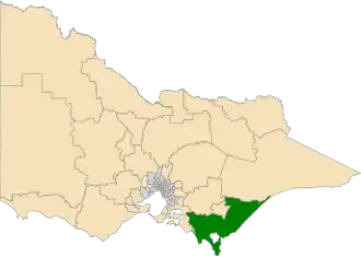 ![]() Location of Gippsland South (dark green) in Victoria | |||||||||||||||