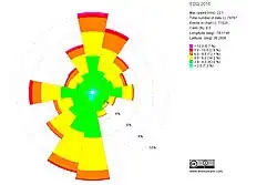 Wind rose showing distribution of wind speed and direction for Elizabeth City Regional Airport for the year 2016