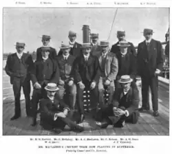 Sydney Barnes made his debut for England and took 19 wickets in the first two Tests before being injured in the third and taking no further part in the series. His selection for the tour was something of a coup for MacLaren, as Barnes had very little first-class experience behind him: a total of seven games. He had been playing in the Lancashire League during the 1901 English season, but appeared in one game for Lancashire near the end of the season, taking 6/70 and 0/29.[2] As a result of this performance MacLaren, who was the Lancashire captain, selected him for the touring party.
