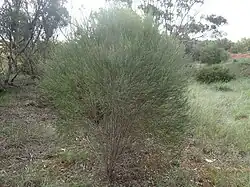 Eremophila dichroantha, also known as bale-hook eremophila, is species of a flowering plant in the figwort family, Scrophulariaceae and is endemic to the south-west of Western Australia. It is a shrub with many ascending branches making the plant appear broom-like. It has small, hooked leaves and small, though abundant, violet to lilac-coloured flowers.