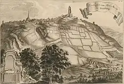There is evidence that indicates the hill was settled even in prehistoric times. Pieces of pottery from the Michelsberg culture have also been found here. Excavations in the vicinity of the present-day collegiate church have revealed traces of ditches, ramparts and posts. Radio carbon dating points to their origin in the pre-Roman Iron Age. In addition the wooden posts were made from trees that can be dated to between 420 and 370 B.C.[1][2]