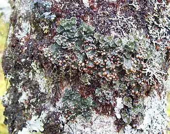 Erioderma pedicellatum is a medium-sized, foliose lichen in the family Pannariaceae,[4] commonly called the boreal felt lichen. It grows on trees in damp boreal forests along the Atlantic coast in Canada, as well as in southcentral Alaska, the Kamchatka Peninsula,[5][6] and Norway.[7]
