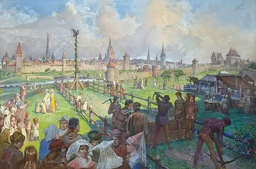 In 1887, after spending a few years in Paris and Rome, he returned to Hanover and became a member of the Hannoverscher Künstlerverein. In 1895, he was appointed a lecturer for drawing and architectural painting at the Technischen Hochschule. Two years later, he took over management of the "Nude Room" at his alma mater, the School of Applied Arts, Hanover.[2] He was appointed a "Professor Extraordinarius" at the Technischen Hochschule in 1899.[1] After that, he became a teacher at the School of Applied Arts in Straßburg.