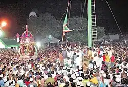 Lakhs of pilgrims witnessing the Holy flag hoisting ceremony at Erwadi dargah, October 2010.