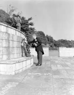 Ambassador Dening laying a wreath in the Yokohama War Cemetery on Remembrance Day — November 1955