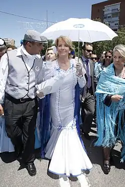 Esperanza Aguirre y Gil de Biedma (Spanish pronunciation: [espeˈɾanθa aˈɣire]; born 3 January 1952)[2] is a Spanish politician. As member of the People's Party (PP), she served as President of the Senate between 1999 and 2002 (becoming the first female politician to have held the post), as President of the Community of Madrid between 2003 and 2012 and as Minister of Education and Culture (1996–1999). She also chaired the People's Party of the Community of Madrid between 2004 and 2016.