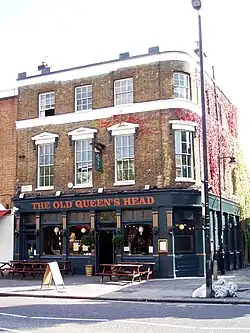 The Old Queen's Head, a pub, contains a plaster ceiling and chimneypiece constructed in the 16th century.[3]