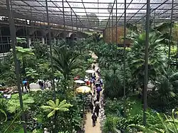 The term "cold greenhouse" comes from the original building's lack of mechanical heating; instead, wooden slats regulate sunlight and protect the plants from excessively hot or cold temperatures.[4] The Cold Greenhouse is the largest of the three, measuring about 8,100 square metres (87,000 sq ft) in area. It is home to azalea and camellia species from around the world.