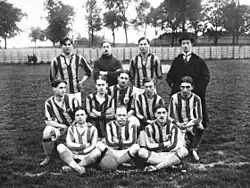 The club's football section affiliated with French Amateur Cycling Federation (FCAF), a minor federation in terms of football, which allowed Médoc to become its best team easily, comfortably winning a three-peat of FCAF championships between 1912 and 1914; in fact, the club even won the 1914 title without playing a single match.[9] Nevertheless, these performances allowed the club to qualify for the Trophée de France, an inter-federation national competition organized by the CFI. Etienne played in the 1913 final on 18 May, starting as a forward alongside his brother Edouard (midfield), and it was one of his crosses that resulted in the opening goal of the match, but his team eventually lost 1–2 to CA Paris.[10] In the following year, on 26 April, he started in the final of the 1914 Trophée de France, and even though they lost 4–1 to Olympique Lillois, he was described as one of the team's best players.[11]