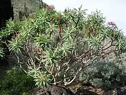 Euphorbia atropurpurea, called tabaiba majorera or tabaiba roja in Spanish, is a shrub in the family Euphorbiaceae native to Tenerife in the Canary Islands. It can reach 2 metres in height, and grows in ravines, and on slopes and terraces.