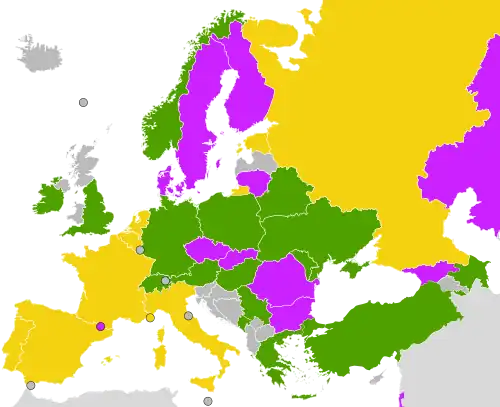 During this era participation has continued to increase, breaking the 20-team barrier in 2011 and a record 27 nations competed in 2017, seeing participation expand to some of Europe's least populated nations such as Lithuania and Andorra, and to the continent's most eastern periphery with Azerbaijan and Kazakhstan debuting and becoming league regulars.[26] The Superfinal and regular season stages have also spread out further across Europe; the former has been staged in Estonia,[27] The Netherlands[28] and Russia,[29] whilst the latter have been hosted in Serbia,[30] Hungary[31] and Ukraine.[32] Russia's rise culminated with their first title in 2009; with four further titles since, Russia equalled Spain and Portugal's long standing record tally of five titles in 2017,[33] and at least finishing in the top four every season from 2007–19, the Russians have cemented their position as a superpower. During this period Portugal have continued to be a dominant side, becoming only the second team after Spain (1999–2001) to win three titles in a row (2019–2022), to move clear as the record-holding champions, now with eight.[34] Meanwhile, Switzerland and Ukraine claimed their maiden crowns,[35][36] and Belarus have also broken into the elite by reaching their first final in 2021.[34] On the other hand, this era has seen the demise of nations like France, who saw relegation to Division B in 2010[37] and again 2012,[38] meanwhile Spain have only made two finals during these ten years, despite their five previous titles.