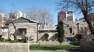 Both Ashkenazi and Sephardi families lived in Even Yisrael.[9] In the absence of a dedicated synagogue, prayer services were held in private homes or residents walked to the Beit Avraham synagogue in the nearby Mishkenot Yisrael neighborhood.[22] In the 1880s one of the residents of Even Yisrael, Zvi Aryeh Lunsky Hacohen, gave over his home for a permanent synagogue for the Ashkenazi community; it was named Beit Zvi.[23][22] Lunsky died in 1890.[22] The two-room dwelling was eventually remodeled into one long hall and the entrance to the synagogue, originally located off the central courtyard, was moved to the opposite side, facing Agrippas Street.[22]