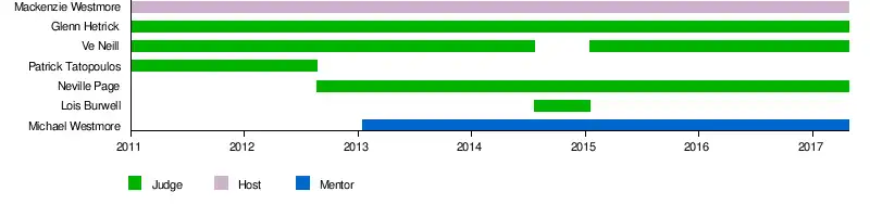 Actress McKenzie Westmore, known for her role as Sheridan Crane on the former NBC/DirecTV soap opera Passions and a member of the Westmore family of makeup artists, serves as the show's host while her father, Michael Westmore, serves as the show's mentor (seasons 4-13). For each assignment, the contestants' work is individually evaluated by a panel of professional special effects makeup artists who serve as judges. These judges have included television and film makeup artist Glenn Hetrick, Academy- and Emmy Award–winning makeup artist Ve Neill, creature designer and director Patrick Tatopoulos (seasons 1-3), and creature and concept designer Neville Page (seasons 3-13).[2] Industry figures and artists including Brian Grazer, Kevin Smith, Paul W. S. Anderson, Greg Nicotero, Rick Baker, Doug Jones, Len Wiseman, Gale Anne Hurd and Marcus Nispel have served as guest judges.[3]