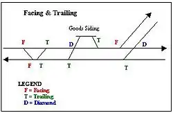Facing or trailing are railway turnouts (or 'points' in the UK) in respect to whether they are divergent or convergent. When a train traverses a turnout in a facing direction, it may diverge onto either of the two routes. When travelled in a trailing direction, the two routes converge onto each other.[1][2][3]