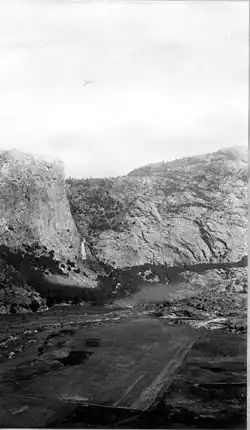 The mouth of Falls Creek on Hetch Hetchy Valley before flooding
