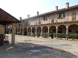 It was known for the production of clogs, which were sold at Monza, the town of which the municipality was a member until 1866, when it was annexed to Brugherio.[4] Of the original architectural structure remains only the wing of the portico overlooking Via Casecca, which, although much restored, retains the characteristic features of the Lombard farmhouse.[9]