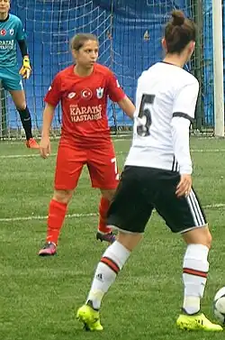 After six seasons, she transferred to the İzmir-based club Konak Belediyespor in August 2017.[1] She debıted at the UEFA Women's Champions League and played in three games of the 2017–18 qualifying round in Tbilisi, Georgia.[3][4][5]