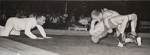 ![]() Tóth (bottom) vs. Olle Anderberg at the 1948 Olympics | |||||||||||||||||||||||||||||||||||||||||||||
