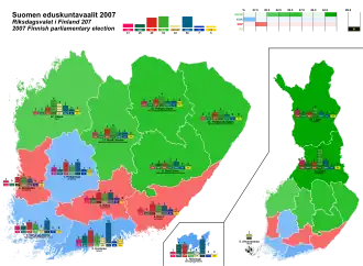 - ^ "Yle.fi | Vaalit 2007 tulospalvelu - Koko maa - puolueiden kannatus". Archived from the original on 2007-03-20. Archived 2007-03-30 at the Wayback Machine