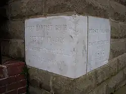 Fire destroyed the first frame church. Between 1910 and 1915, the church was rebuilt (now facing east, toward Ripley Street) under the leadership of pastor Stokes. Members of the congregation were asked to each bring a brick a day to build it—hence the church's nickname, the "Brick-A-Day Church."[8] The building was designed in Romanesque Revival style by Walter T. Bailey of the Tuskegee University.[9]