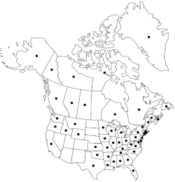 | The map shows where Fissidens adianthoides is found in North America.[2] | |
